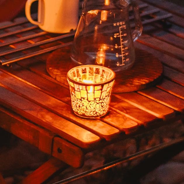 このたび、LOOPLEシリーズにて、アウトドアキャンドル「モザイク」に新色(クラシーク)が登場します。 展示会限定品がご好評につき、ラインナップに仲間入りしました。 色ガラスをあしらったキャンドルグラスは、灯すとクリスタルのような光が揺らめき、自然の風景に溶け込む彩を添えます。 サイトを彩るアクセントとして活躍します。